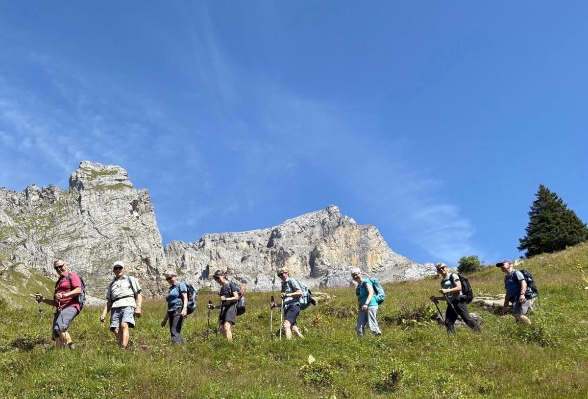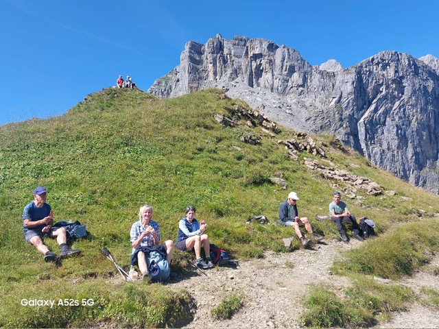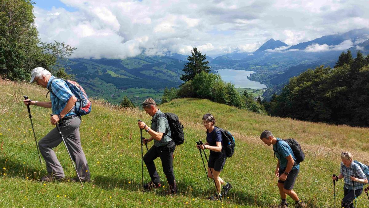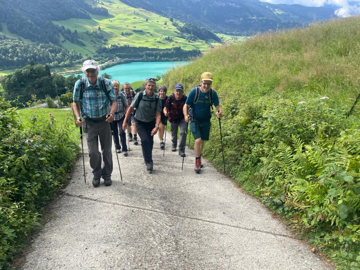 Die sehr sportlichen wagten den steilen Aufstieg auf den Ruosalper Chulm. Sie wurden belohnt mit einer wunderbaren Aussicht auf den Bergkranz rund um das Schächental, aber auch mit der Weitsicht ins Muothatal. Nach viereinhalb Stunden trafen auch sie in Ratzig ein und konnten den Durst löschen.