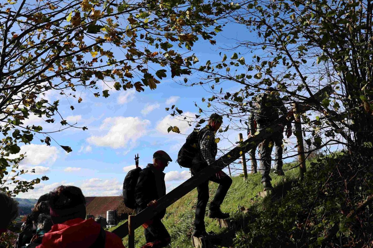 Am Mittag zur zwölften Stunde zeigt sich wieder einmal die Sonne und wird uns mal weniger und mal mehr bei unserer Herbstwanderung begleiten. Ideale Bedingungen für unsere heutige Tour. Der Rottal-Pfeil bringt uns ab dem Buttisholzer Busbahnhof nach Willisau, von wo wir in zwei Gruppen zuerst entlang des Galgenberges via Rossgass, Richtung Ostergau marschieren. Entlang der idyllischen Weiherlandschaft, welche als unbeabsichtigte Folge der intensiven Torfstecherei vor allem während des Zweiten Weltkrieges entstanden ist. Die noch heute stehenden Holzgaden (Hütten) sind Zeugen jener Zeit. Täglich waren im Ostergau bis zu 300 Leute beschäftigt. Zur Fasnachtszeit gehen in Willisau die Moorsträggele um, sie stellen Geister dar, die aus den Tiefen der Weiher aufgestiegen sein sollen?