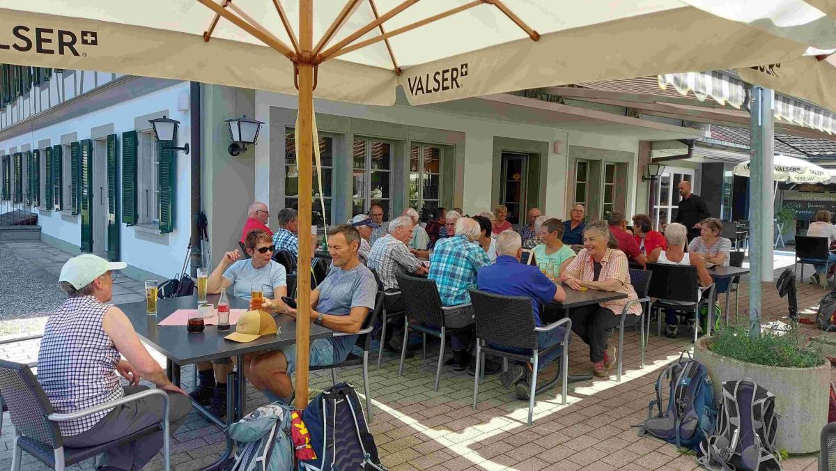 Weiter wanderten wir hinunter nach Bürgisweyerbad, wo alle am Weiher unter schattenspenden Bäumen die Mittagsrast verbrachten. Gut gestärkt und erholt, mit oder ohne Mittagschlaf, nahmen wir die letzte Wanderstrecke nach Melchnau unter die Füsse. Im Restaurant Linde genossen wir im Schatten ein kühles Getränk vor der Heimfahrt.