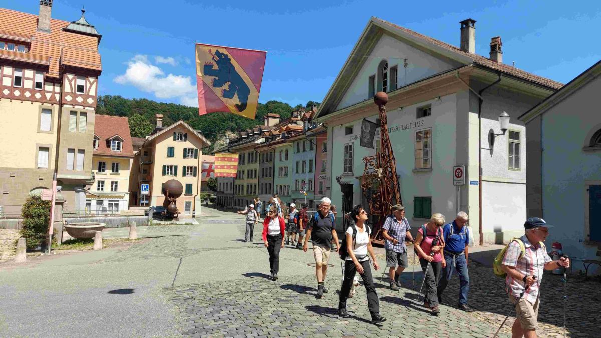 Das Leiterteam hatte zu einer Kurzwanderung mit Betriebsbesichtigung und einem Imbiss eingeladen. Die kurze Wanderung führte uns über Staltenfeld und Guglern zur Firma Tschopp Holzindustrie, wo wir vom Co-Geschäftsleiter Daniel Tschopp erwartet wurden.