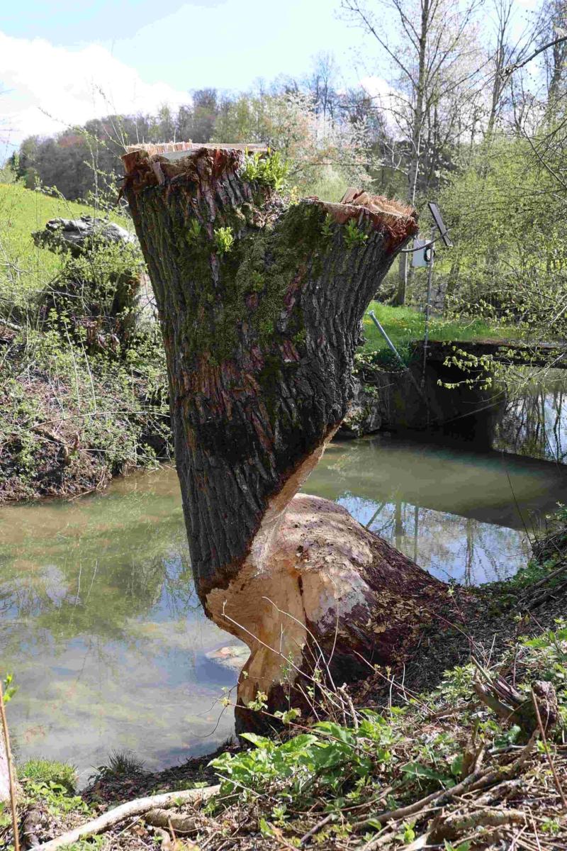 Die lange Tour ab Fläcke führte der Wyna entlang. Dabei konnten angefressene Baumstämme und ein Biber-Dammbau im Bach bestaunt werden.