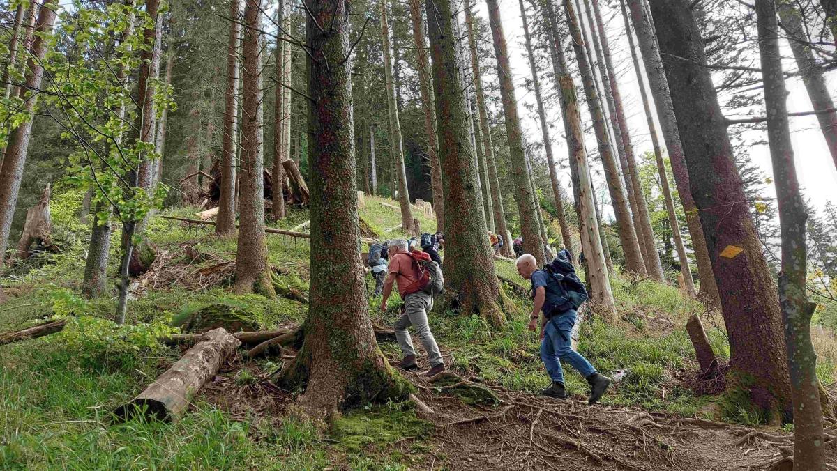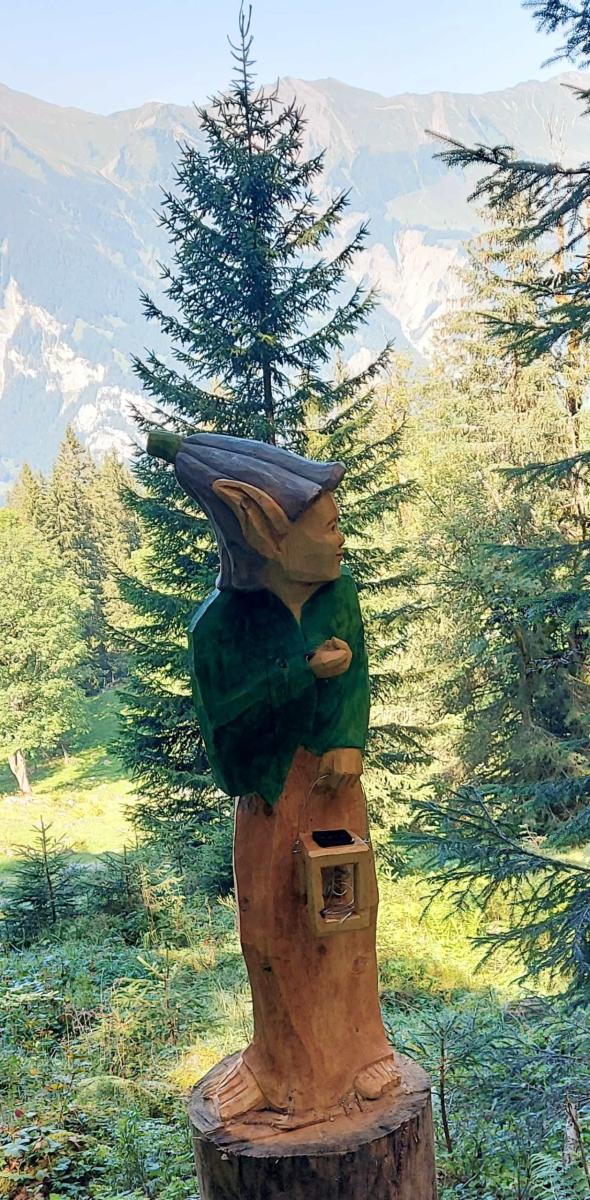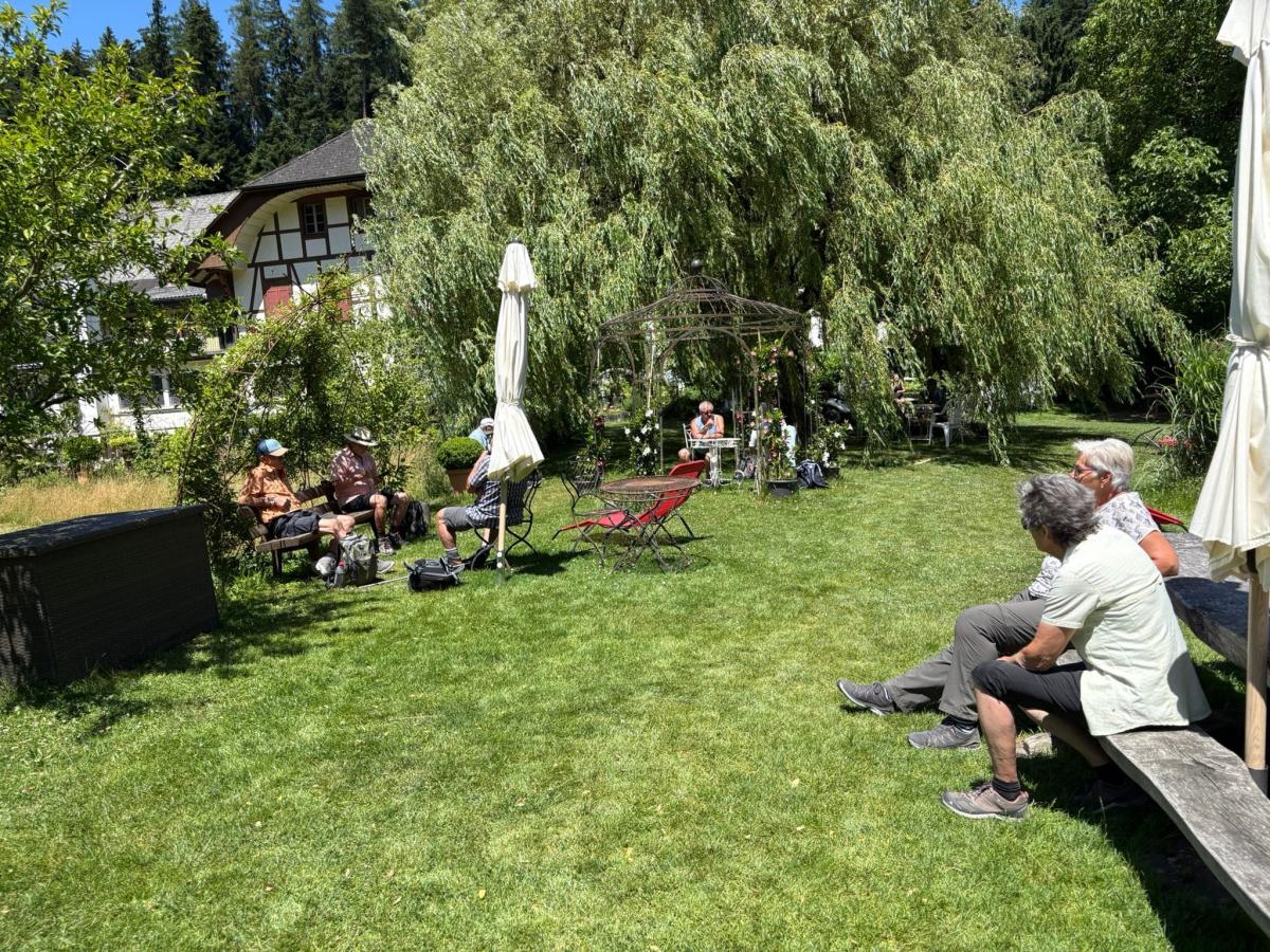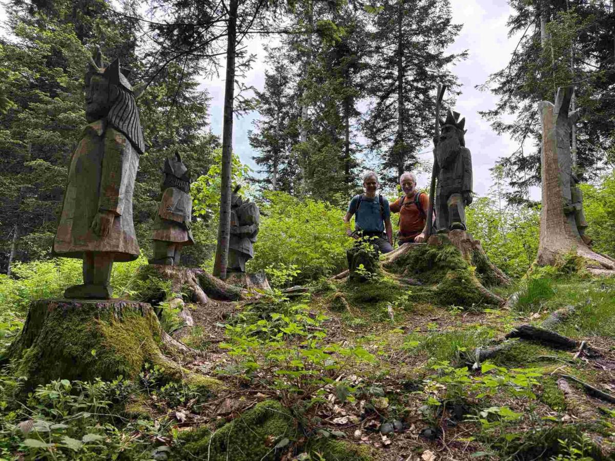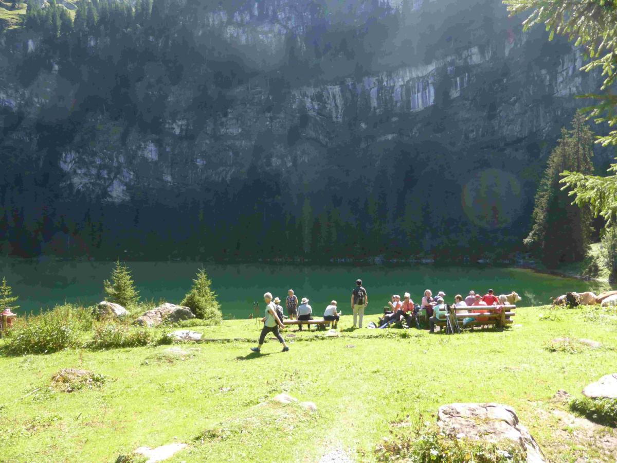 Während der Mittagspause der Geniessergruppe am Hinterburgseeli ertönten fröhliche Jauchzer aus der Höhe. Die Sportlichen hatten ihr Ziel, die Arvenegg, hoch über dem See erreicht. Auf dem Rückweg konnten auch neue Skulpturen, die im Juli 2024 geschnitzt wurden, bestaunt werden. 29 Teilnehmerinnen und Teilnehmer erlebten einen wunderschönen Sommertag.