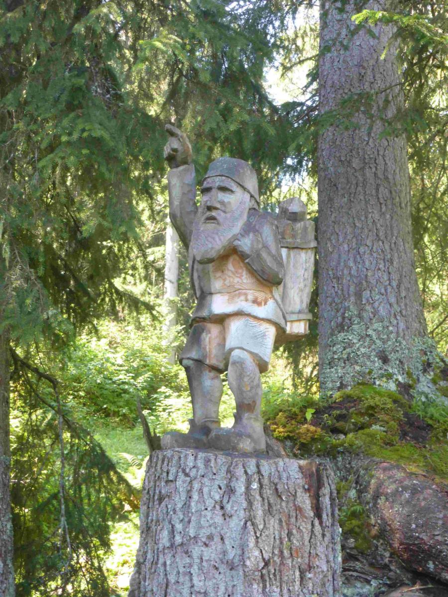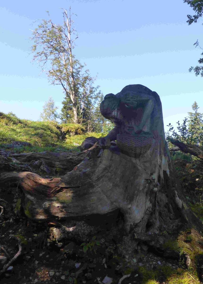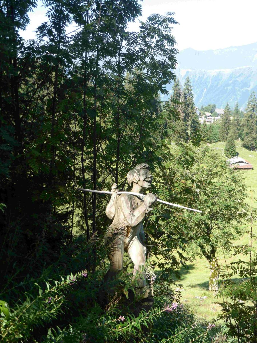 Der Dienstagmorgen zeigte sich herbstlich und wolkenverhangen. Nach dem Brünig lichtete sich der Nebel. Bei strahlendem Sonnenschein konnten wir auf der Axalp losmarschieren. Für beide Gruppen, Sportliche und Geniesser, begann die Wanderung auf dem Schnitzlerweg. Der Weg ist gesäumt von zahlreichen Schnitzfiguren, die Holzbildhauer aus Brienz geschaffen haben. Seit dem Lawinenwinter und dem Sturm Lothar 1999 verwandeln die Schnitzler jedes Jahr einige Baumstrünke in kunstvolle Figuren.