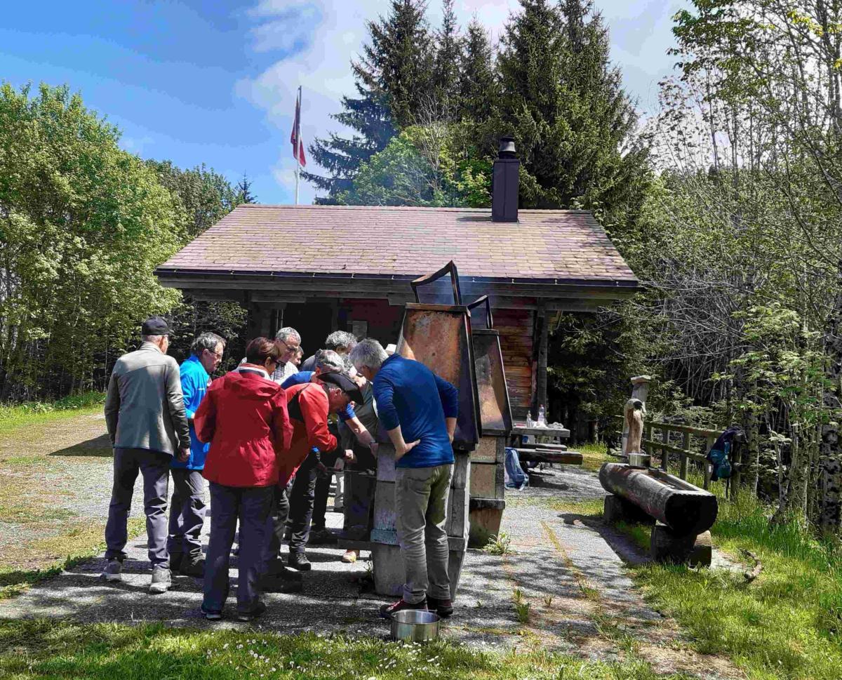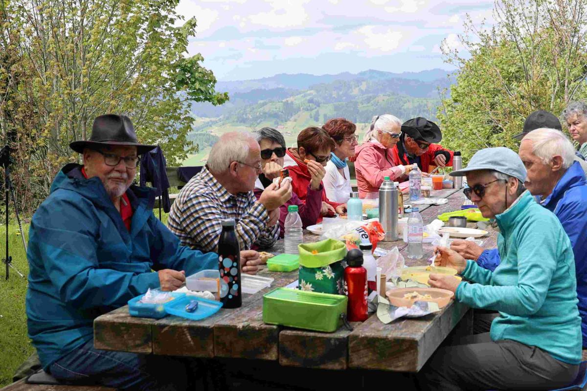 Die «Bradwörscht» werden ausgepackt, grilliert und mit anderen Köstlichkeiten genossen, inklusive der herrlichen Aussicht auf Schüpfheim. Kaffee mit oder ohne Güx und Guetzli runden das Festessen ab.