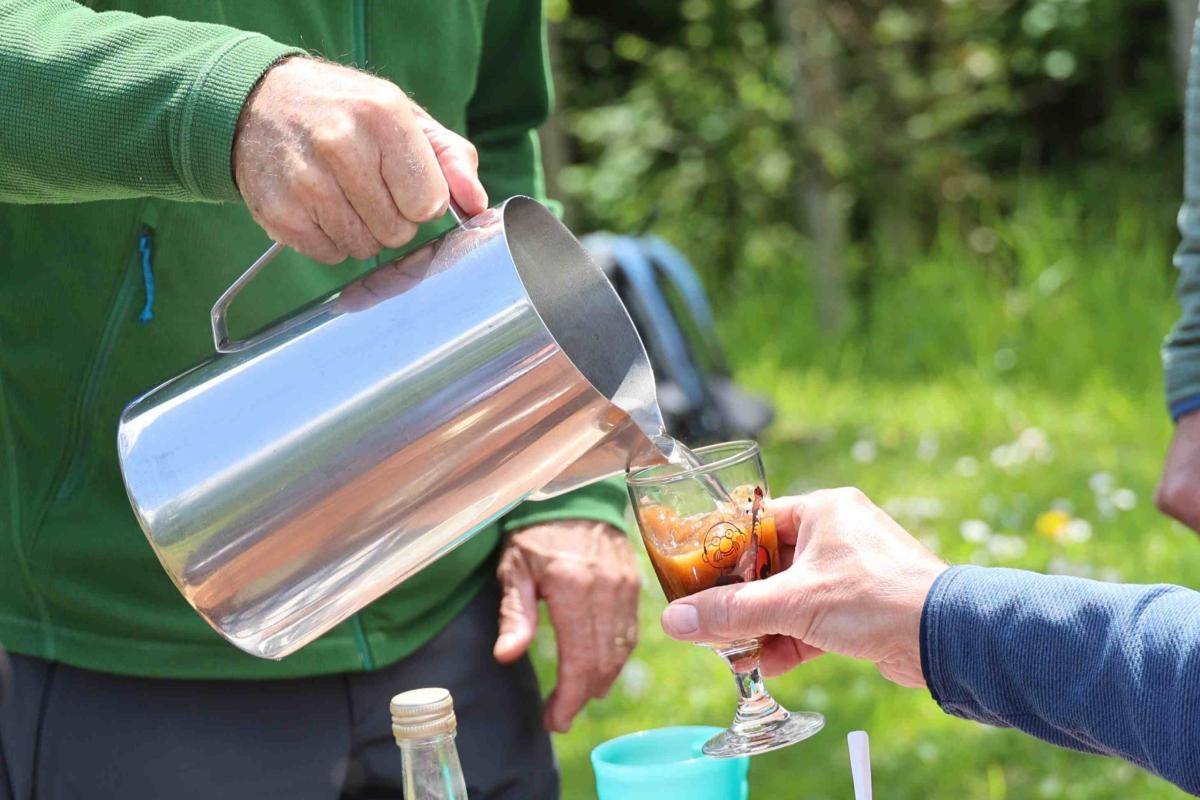 Die Geniessergruppe stieg bereits in Bürglen Brügg in die Luftseilbahn nach Ruogig. Auf breitem Weg wanderten sie nach Biel, wo sie bei der Kapelle auf einem idealen Picknickplatz die Mittagsrast verbrachten. Kurz darauf konnte auf der Terrasse der Alp Käserei Kinzig, bei Kaffee und Glace die Urner Alpenwelt bewundert werden. Der weitere Weg führte über Stock und Stein zum Ziel Ratzi.