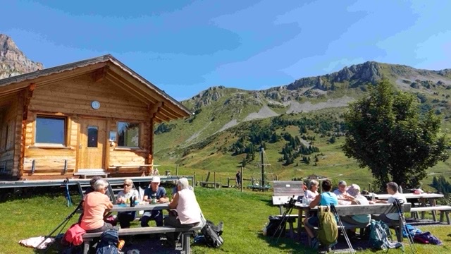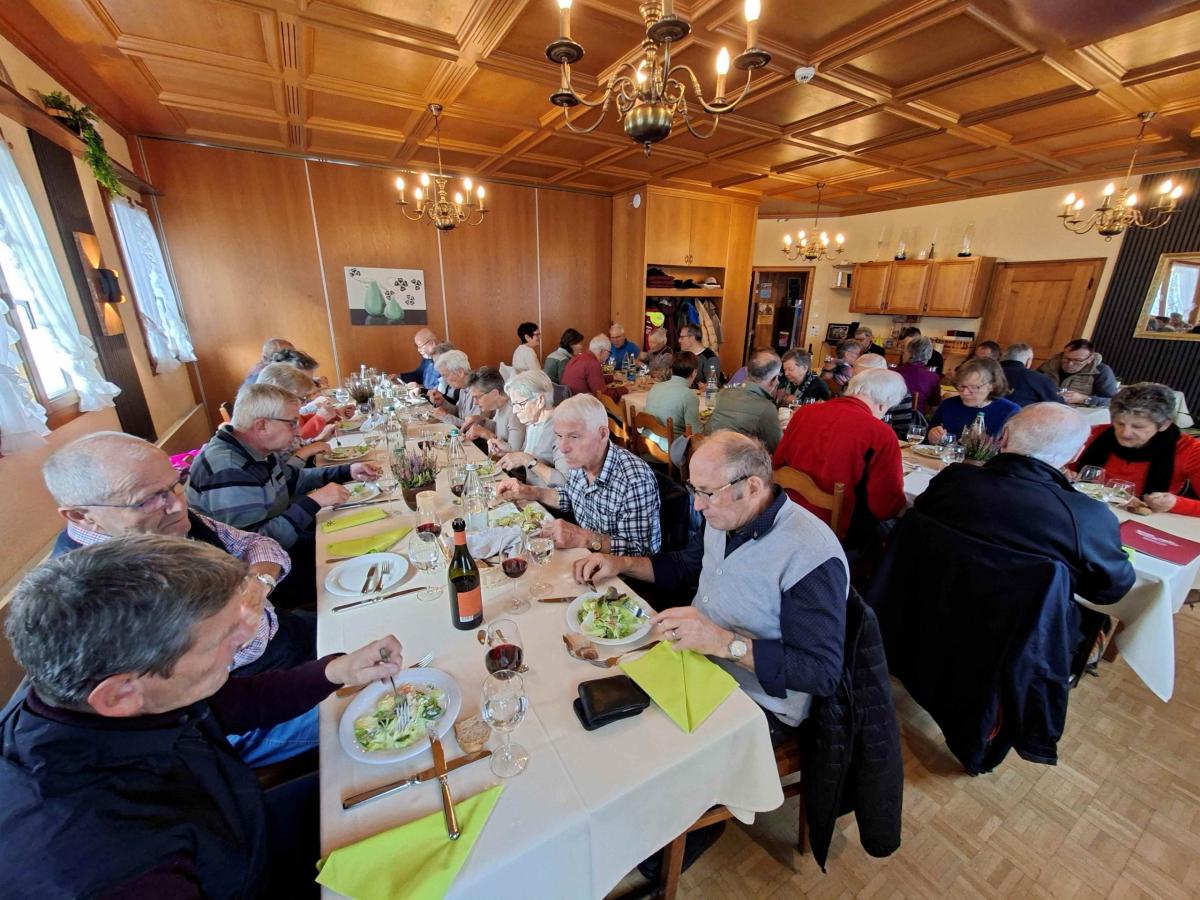 Bald startete die sportliche Gruppe, sie hatten auf der Strecke zum Turren 1100 Höhenmeter zu bewältigen. Der Weg führte durch Wälder und Alpwiesen zum Teil steil aufwärts. Bei Alphütten boten sich immer wieder bequeme Sitzgelegenheiten für Pausen. Auf der Alp Feldmoos erzählte der Älpler, dass bei ihm auch Gusti und Rinder aus Buttisholz sömmern. Nach fast 4 Stunden Wanderzeit erreichte die Gruppe die Dundelegg und das Ziel Turren zeigte sich am Gegenhang. Dort sassen die Geniesser bei Kaffee und Dessert und begrüssten bald die Sportlichen mit grossem Applaus.