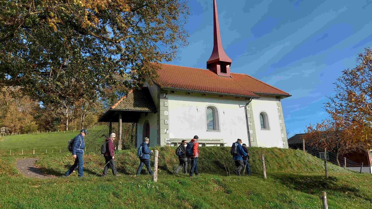 Bericht: Der goldene Herbst zeigte sich von der schönsten Seite. Die klare Sicht zur frisch verschneiten Gebirgskette, zu bunten Wäldern, Hecken und grünen Wiesen begeisterten die 34 Seniorinnen und Senioren. Die gut gepflegten Kapellen lassen die Kraft und den Segen dieser kleinen Wallfahrtsorte erahnen. Mit der Geruchsreise im Waschhüsli in St. Ottilien und dem kleinen Umtrunk, gespendet von der Stiftung, endete ein wunderschöner Herbsttag.