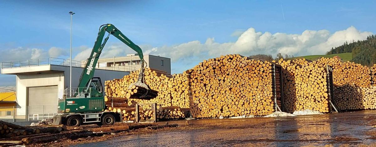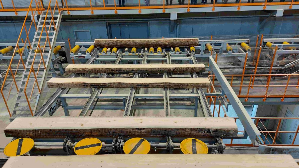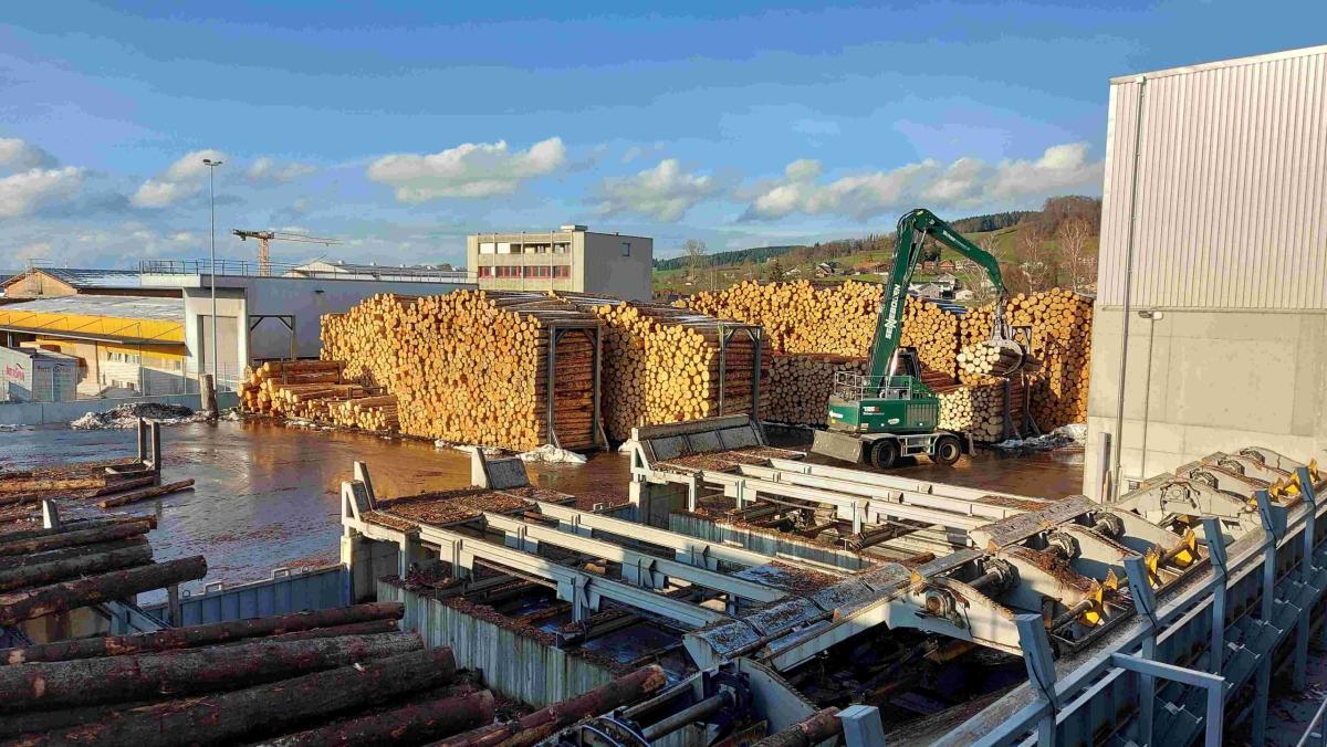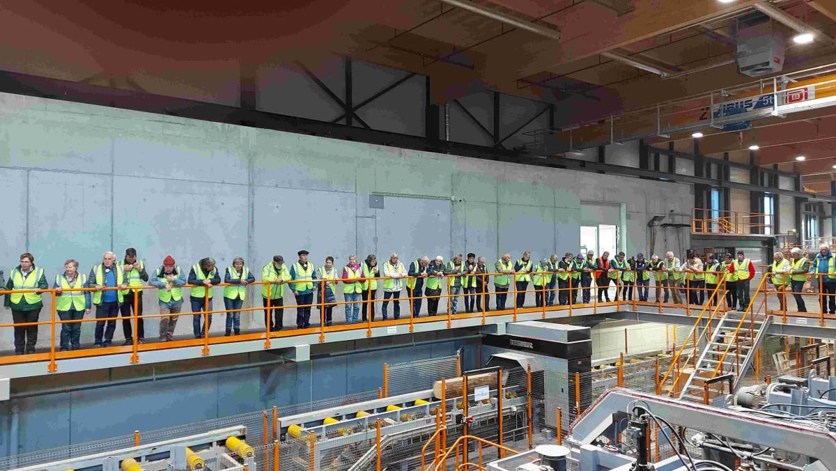 Bei einer Videopräsentation stellte er die Firma vor. Ebenfalls zeigte er uns die zukünftigen Ausbaupläne. Mit Leuchtweste und Kopfhörer ausgestattet, ging es anschliessend auf den Rundgang durch das neue Sägewerk. Daniel zeigte und erklärte uns die Wege des Rundholzes, von der Anlieferung bis zum fertigen Bretterstapel. Täglich können in diesem, von Computer gesteuertem Sägewerk, bis zu 28 Lkw-Ladungen Rundholz verarbeitet werden.