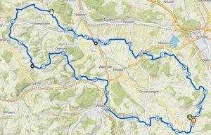 | Ausrüstung | Ein Velohelm ist obligatorisch. Fahrrad in verkehrstüchtigen Zustand, welches auch für Naturstrassen geeignet ist. Sportliche, bequeme Kleidung. Bequeme Schuhe mit gutem Profil. Bei unsicherer Witterung Regenschutz. Ersatzschlauch, Getränkeflasche, Zwischenverpflegung. Versicherung ist Sache der Teilnehmerinnen und Teilnehmer. |