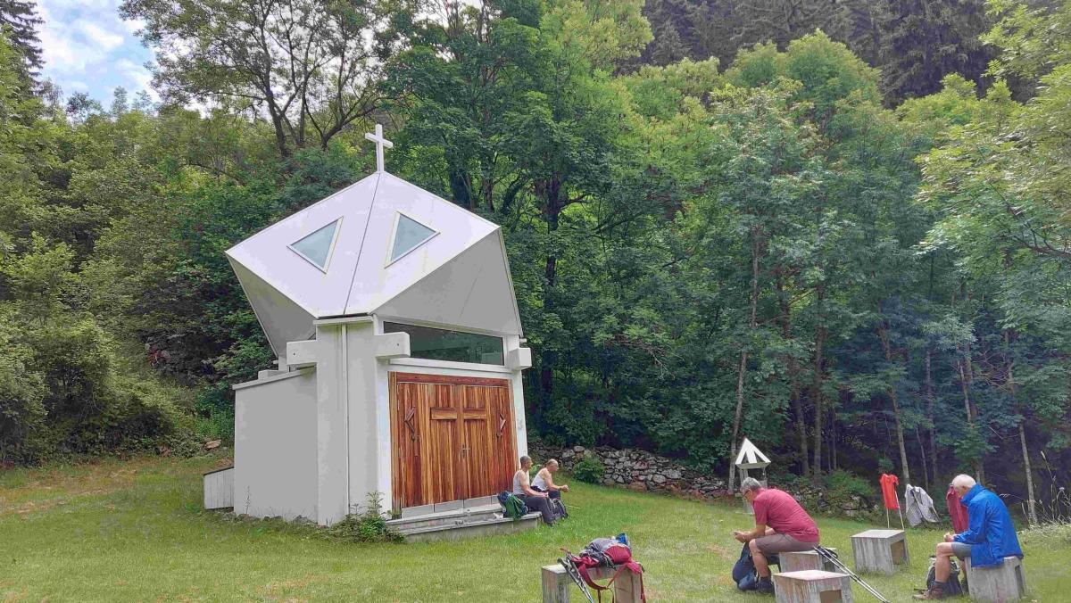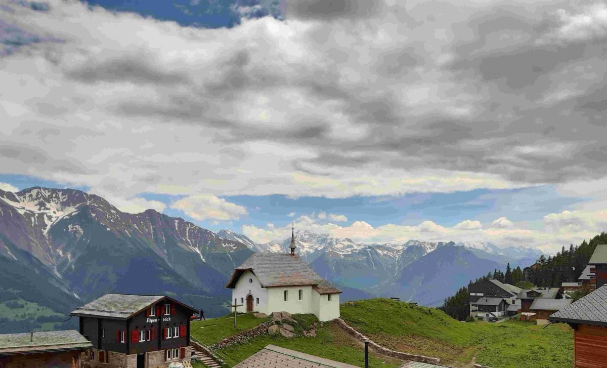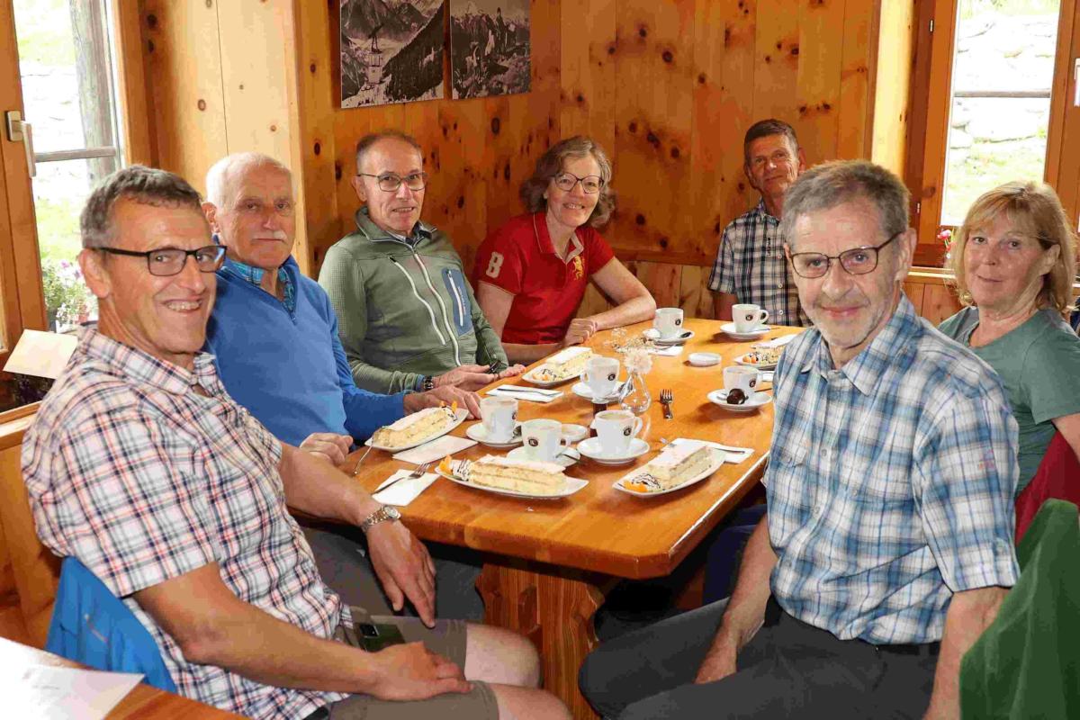 Die andere Gruppe wanderte durch Naters, ein Dorf mit gut erhaltenen Walliserhäusern. Der steile Aufstieg durch die Stahlgasse musste sachte angegangen werden, um nicht ausser Atem zu geraten. Der Weg nach Blatten beinhaltete alles, was eine attraktive Wanderung zum Erlebnis macht: Kapellen, See, Bisse, Hexenwald, Bruchji-Bach mit Wasserfällen, Schwarznasenschafe und viele Bergblumen. Über den Tag wurde es immer sonniger und alle waren geschafft nach den 700 Höhenmetern hinauf nach Blatten.