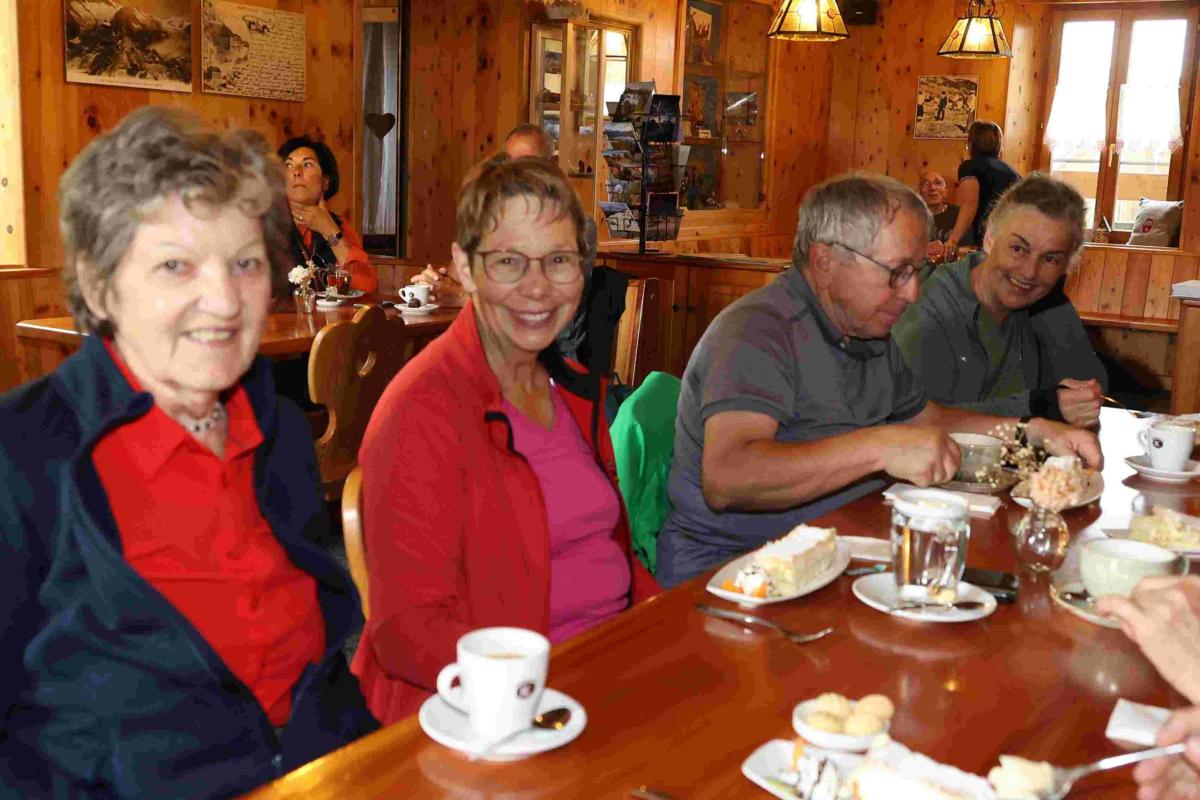 Nach der Fahrt zurück zur Fiescheralp begann die erste Wanderung zur Bättmer-Hittä. Die frisch zubereiteten und grössten Cremeschnitten der Welt waren ein Genuss. Auf dem Weg von der Fiescheralp zur Riederalp waren der Schönboden- Bettmer- und der Blausee umgeben von satten Wiesen und Frühlingsbergblumen. Die Geniessergruppe liess es sich nicht nehmen auf das Bettmerhorn zu fahren, um die grandiose Aussicht auf den Aletschgletscher, zum Matterhorn und zu vielen Viertausendern zu geniessen. Die zweite Gruppe begab sich auf dem Bergweg zum Blausee und weiter zur Hohfluh. Über den Härdernagrat und die Riederfurka wurde das Tagesziel Riederalp erreicht.