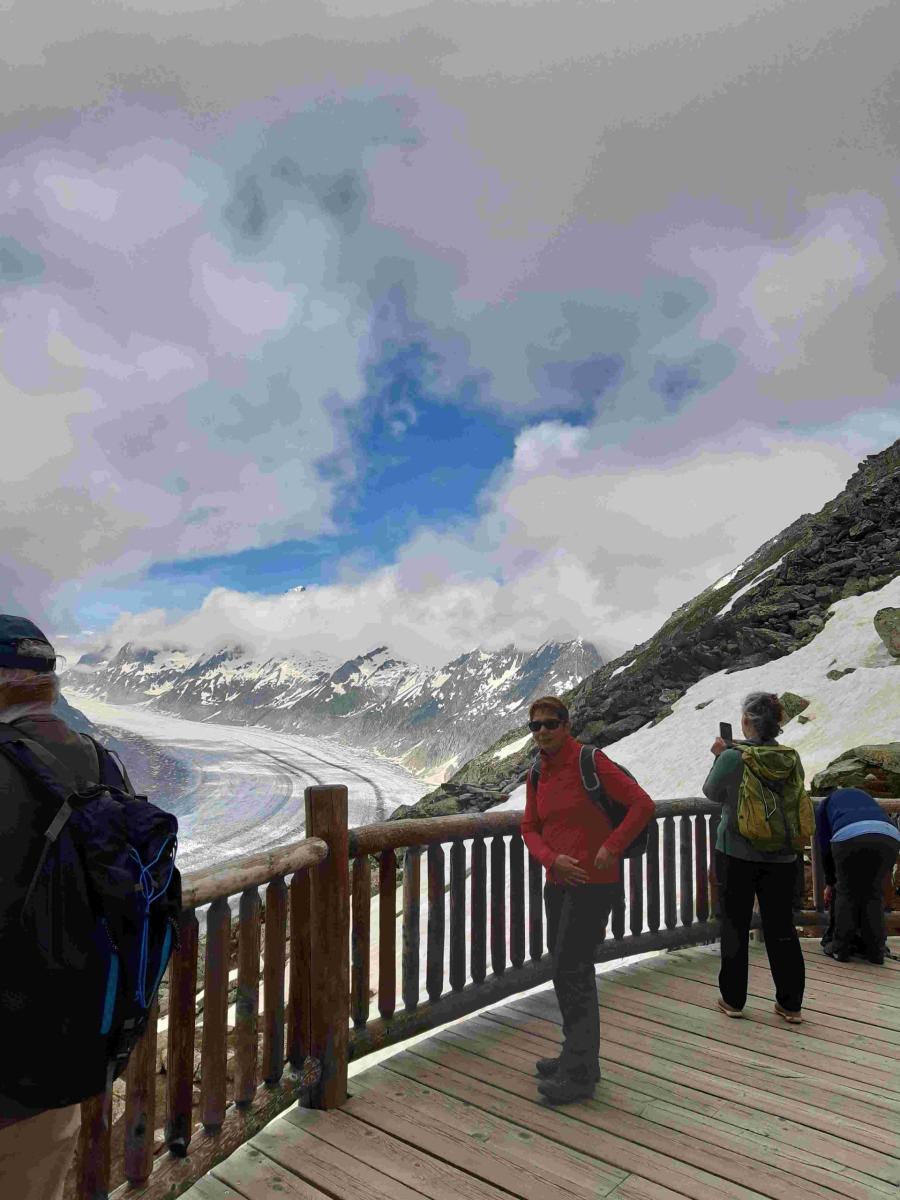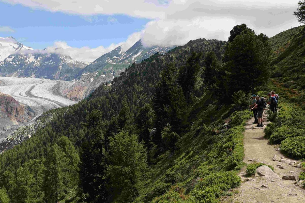 Ein herrlicher Tag stand uns bevor, ideal um das UNESCO Weltnaturerbe am Aletschgletscher zu erkunden. Alle machten sich, gemächlich oder zügig, auf zur schönen Tour. Der Weg führte über die Riederfurka, durch den Aletschwald, zwischen alten knorrigen Lerchen und Arven, hinauf auf die Moosfluh. Sportlich begab sich eine Gruppe weiter nach Biel und hoch zum Bettmerhorn auf 2647 m.ü.M. Auf der Fahrt mit der Gondel nach Bettmeralp war die Bättmer-Hittä nicht zu übersehen, was einige bewog die Tour für einen Apéro zu verlängern und am Schluss noch zur Fiescheralp zu marschieren.