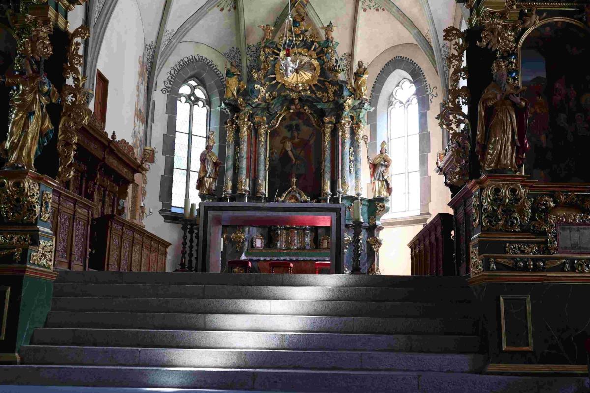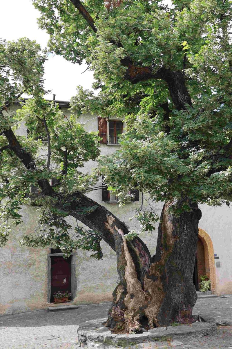 An diesem Morgen grüsste in der Sonne das Kleine Wannenhorn zum Abschied. Ein letztes Mal bestiegen wir das Postauto und fuhren nach Ernen. Es ist eines der ältesten Dörfer in der Schweiz. Der Dorfplatz, stattliche Häuser und die engen Gassen sind über viele Jahrhunderte erhalten geblieben. Die Kirche St. Georg birgt viele kulturelle Schätze, die die frühere politische und religiöse Vormachtstellung im Goms repräsentieren.